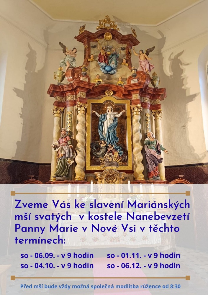 - První sobota v měsíci 9:00 Mše svatá – Nová Ves
